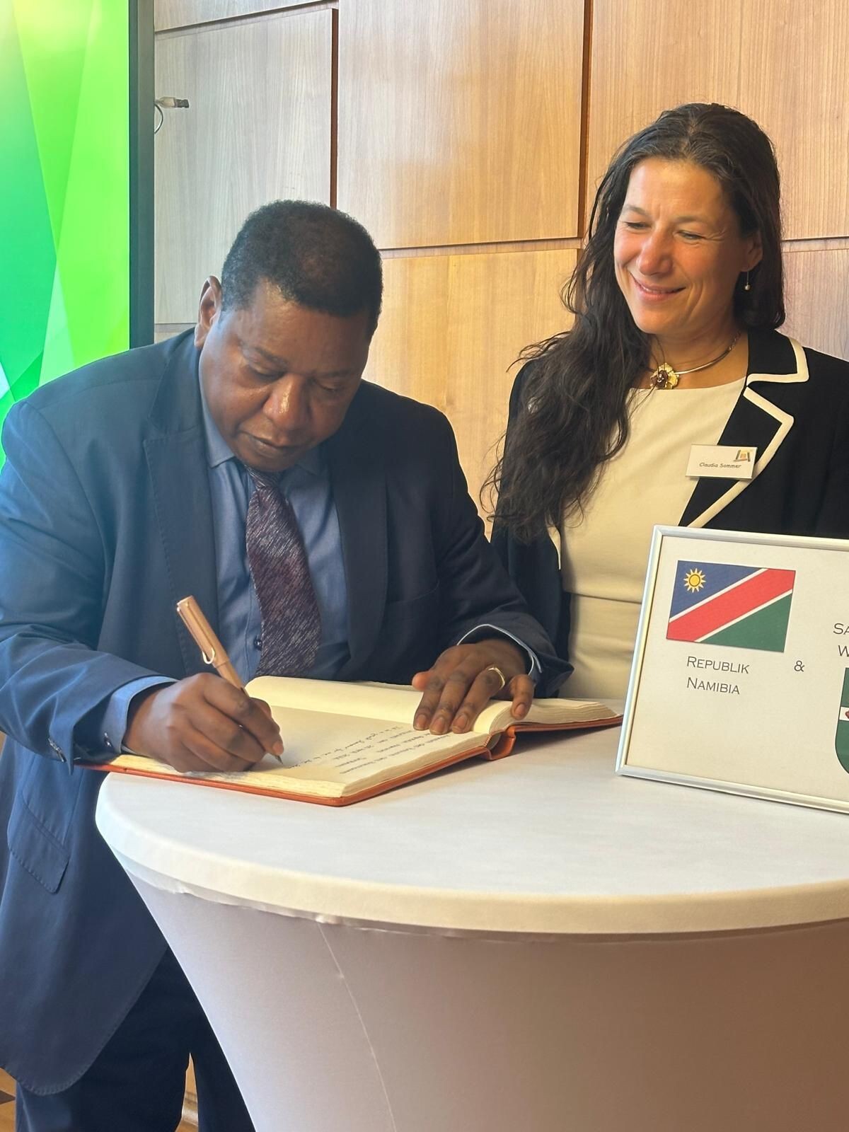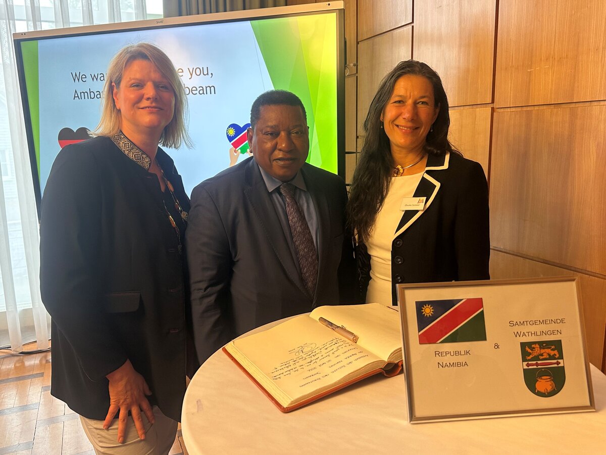 Der Besuch knüpft an einen Austausch mit dem früheren namibischen Parlamentspräsidenten Dr. Peter Katjavivi an, der bereits im März 2025 Gast des Honorarkonsuls und dabei ebenfalls im Austausch mit Samtgemeindebürgermeisterin Claudia Sommer war.